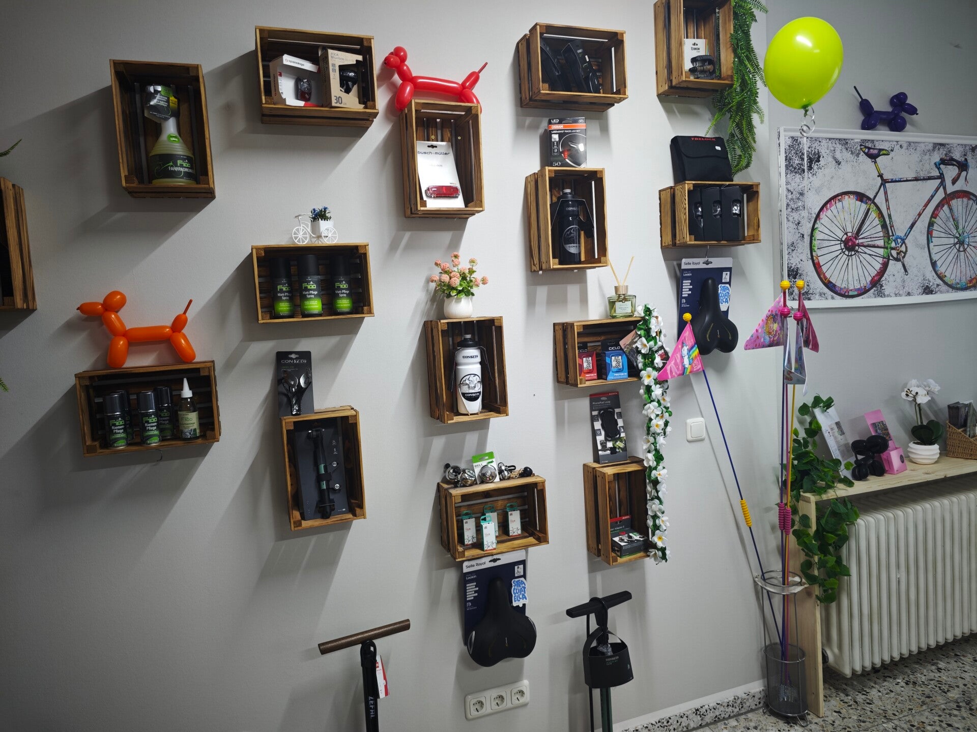 In unserem Laden findet ihr eine Auswahl an hübschen Zubehörteilen , wie z.B. Körbe, Taschen, Helme, Kinderradzubehör und Pflegemittel